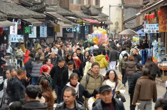 下司古镇,一场“时光之门·祈福未来”烟花秀点亮夜空,光影交错中,游客自觉排队、文明礼让的身影,成了夜幕下另一道动人风景。新春集市、民俗演绎等数十项活动轮番登场,秩序井然的背后,是游客与景区的默契配合。