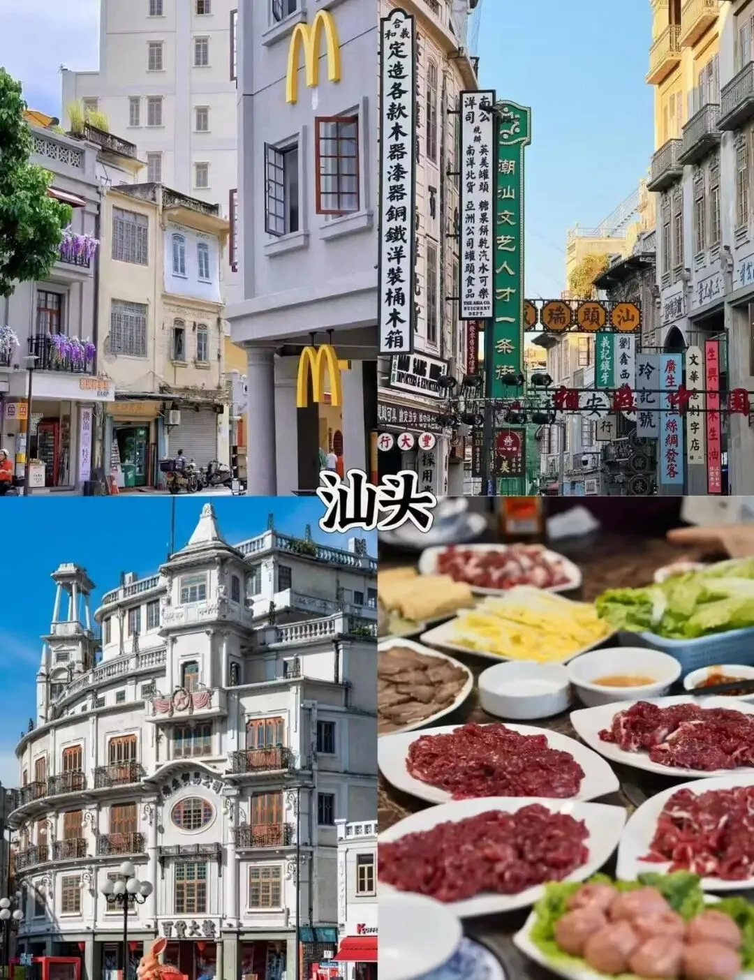 早餐后打卡汕头小公园骑楼群→汕头旅社地标→西堤公园看日落→逛老巷吃小吃(蚝烙、肠粉、甘草水果)→晚餐尝正宗潮汕牛肉火锅,沉浸式感受汕头侨乡风情
