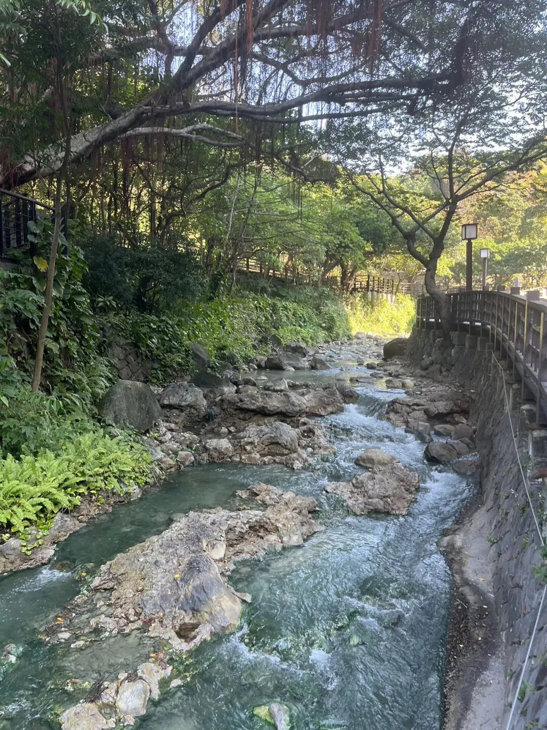 台湾旅游,从北投温泉到马场町纪念公园今天是第三天行程的开始。 D1:香港飞台北——野柳海洋世界 D2:野柳地质公园——石门风力发电站——九份老街——台北动物园 D3:北投温泉——地热谷——温泉博物馆——马场町纪念公园 D5:高美湿地——台中港风力发电站 D7:梧棲观光渔港 D8:五权夜市 D9:墙绘——台北飞香港 晚上住温泉旅馆,楼下公共池的裸汤,晚上回来有些晚,我们只待在房间泡。早上吃完自助餐,往地热谷走去。地热谷离旅馆很近,走路大概七八分钟,一路看到下水道“冒烟”!都是浓浓硫磺味的温泉水!
