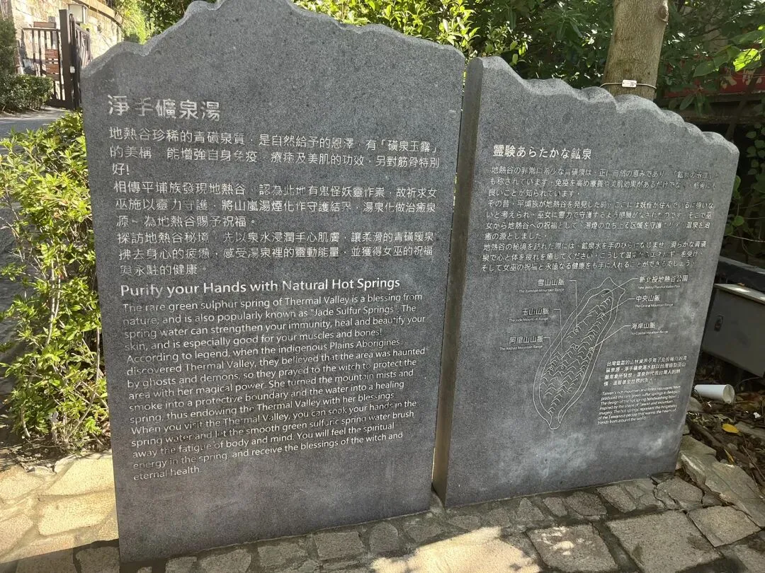 - 硫磺谷(白磺泉):即展板上的 “白磺泉”,水质呈乳白色,带有浓郁硫磺味,酸度较温和,有 “美人汤” 之称。
