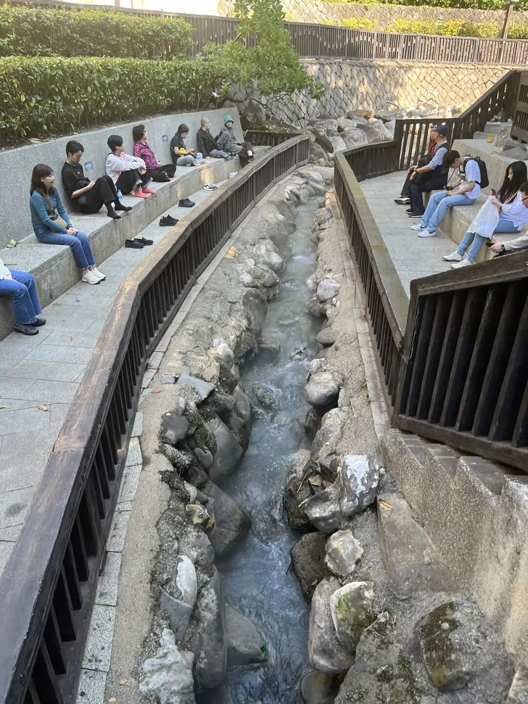 图:户外流的都是热气腾腾的温泉水,禁止泡脚哦