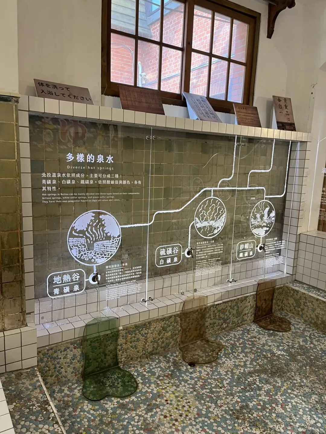 图:北投一带都是青磺泉,呈青绿透明颜色 接下来我们去看了温泉博物馆。