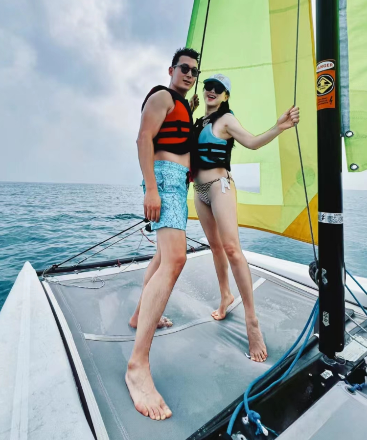 朱珠还和王昀佳在帆船上拍下多张恩爱同框照,这些照片里,朱珠均是穿着比基尼秀身材,这细腰、这大长腿,谁看了不说一句羡慕!而王昀佳同样如此,他的身高十分优越,和朱珠站在一块儿,同样的大长腿简直羡煞旁人了。