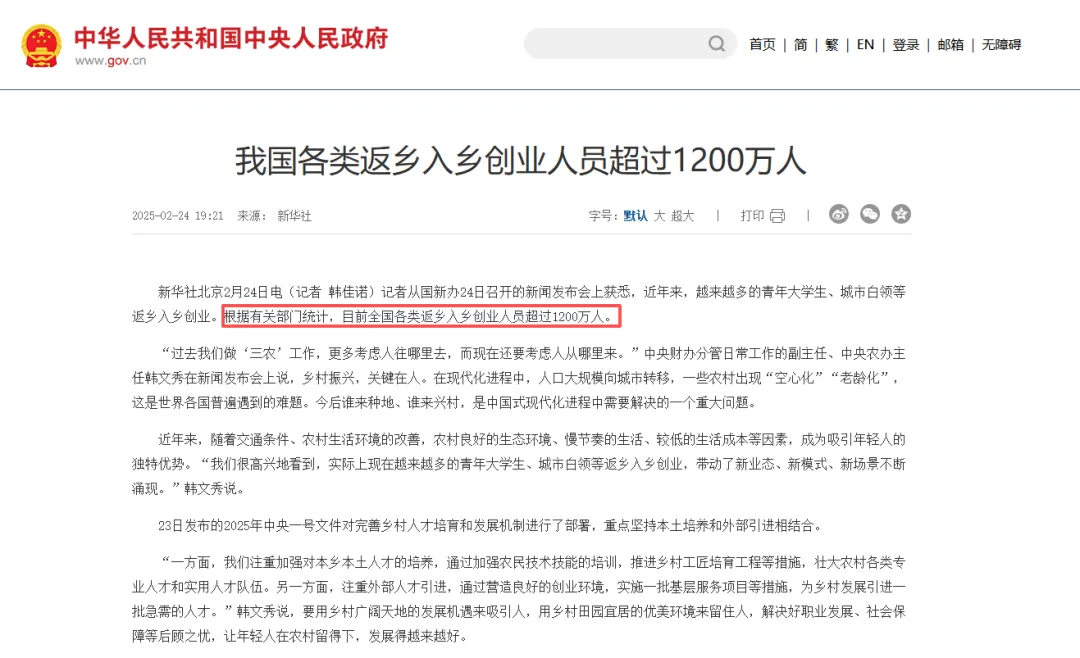 过去五年,返乡入乡创业人员累计超过1200万——以前是“逃离北上广”是个段子,现在成了实打实的人口流动。