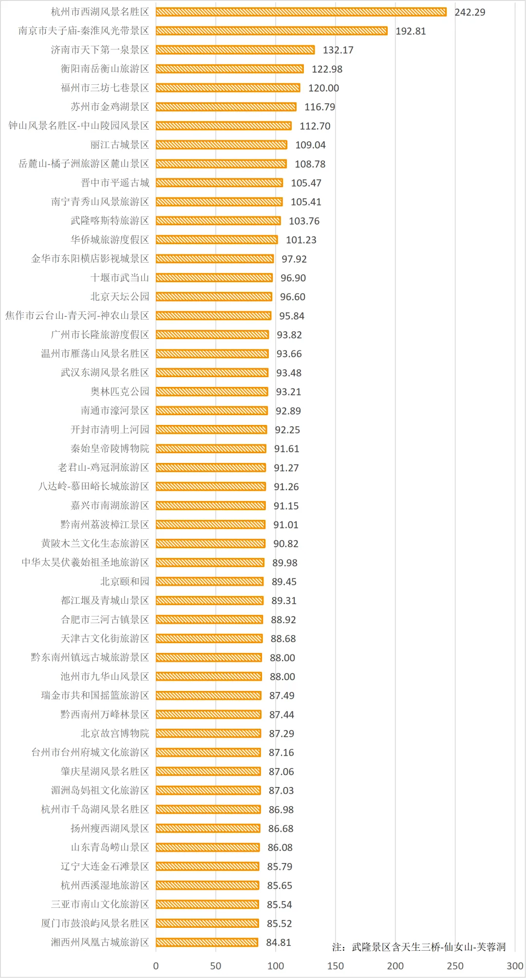 从具体排名来看,5A级景区游客量TOP50中,杭州西湖、南京夫子庙-秦淮风光带、济南天下第一泉稳居前三;入境游客量TOP20榜单则显示出头部景区的强大国际吸引力。
