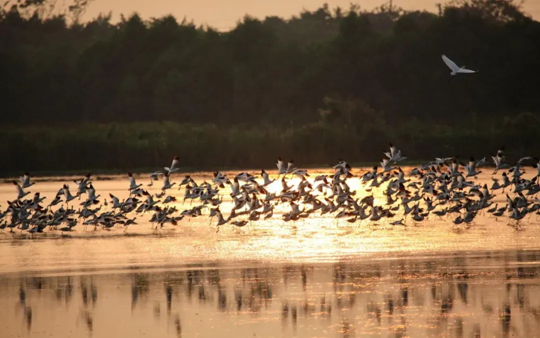 漫步木栈道,穿过成片芦苇荡,看候鸟掠过水面,听风声与鸟鸣交织,人与自然的和谐之美在此尽显。傍晚时分,夕阳洒在水面,波光粼粼,氛围感直接拉满。