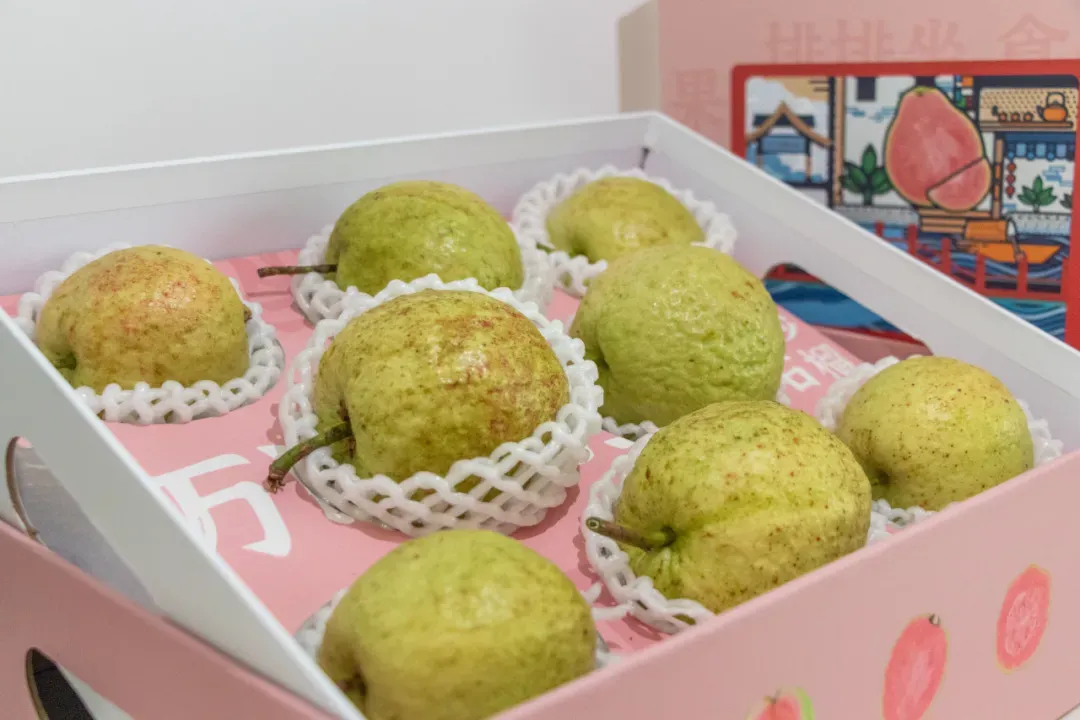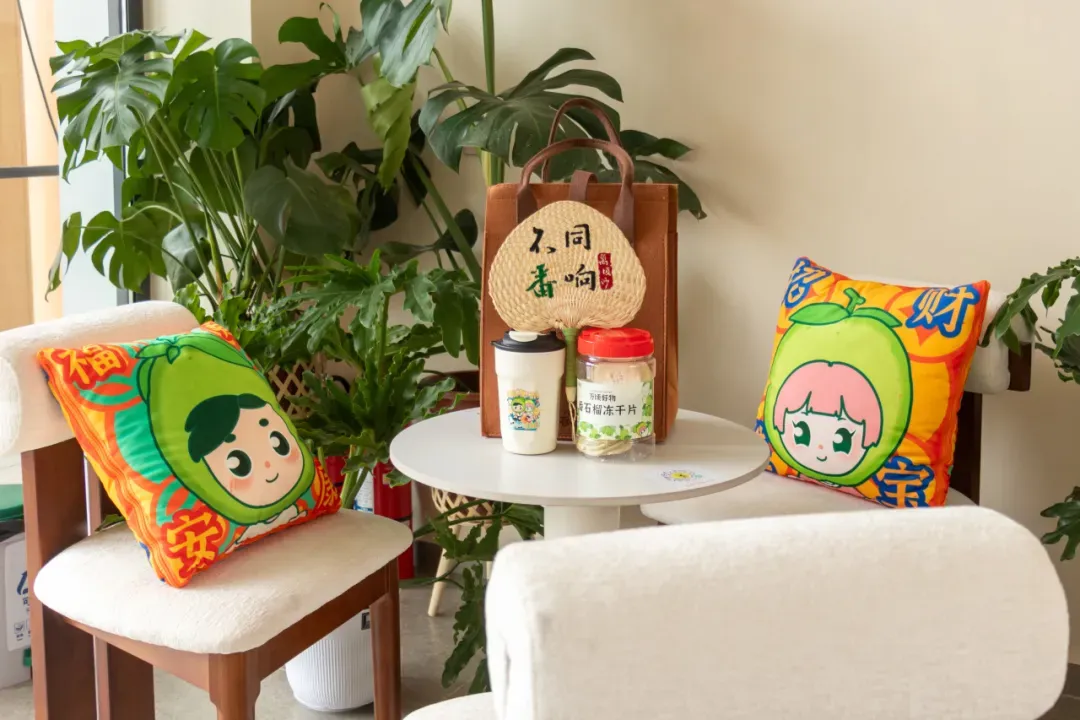 万顷沙以本地特色“福安果”番石榴为核心,打造出可爱亲民的 “福仔”“宝宝”IP形象,并推出一系列融入疍家文化元素的文创周边——抱枕、咖啡杯、蒲扇、笔记本……生动诠释了万顷沙番石榴的品牌优势和水乡文化。
