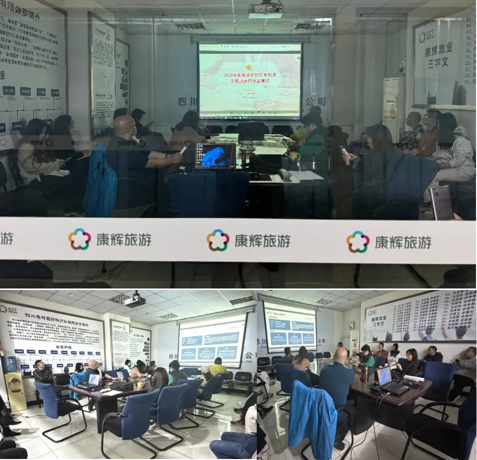文化和旅游部与市场监管总局于近期联合发布通知,将于2026年3月31日起在全国范围内推行使用新版旅游合同文本,为进一步提升旅游服务质量,保障企业合法权益,首旅旅行于2026年2月26日对新版旅游合同的内容更新变化和重点注意事项开展了专题培训,四川康辉在本部会议室组织并参加此次会议。