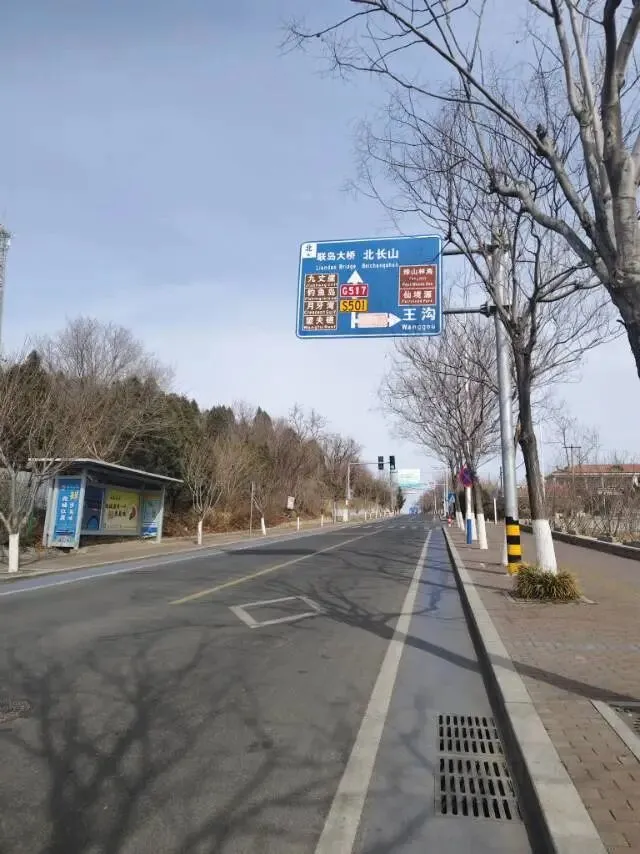 骑行一个多小时,顺着路牌的指引,由S501省道转G517国道,一路沿海蜿蜒。(S501省道与G517国道在长岛,是连接南北长山岛的主要环岛公路)