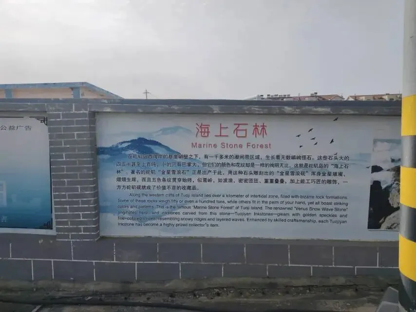 沿着海岸线一路骑行,不经意间,便遇见了刻有“长岛三宝”的亭台。