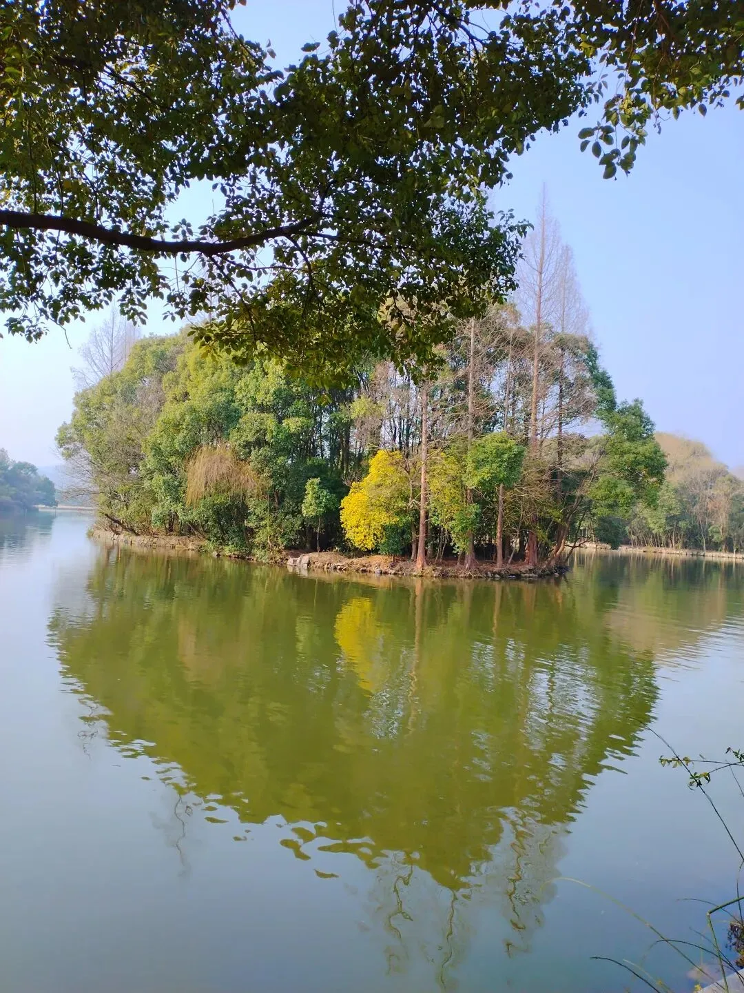 登湖中小岛,绿树成荫,花草葳蕤,清新的花香萦绕周身。沿小径行至古亭,静坐休憩,鉴湖的湖光山色尽收眼底,尘世的烦恼也随微风消散。此刻才懂古人“鉴湖水如月,耶溪女似雪”的赞叹,这般如诗如画的景致,令人沉醉,流连忘返。