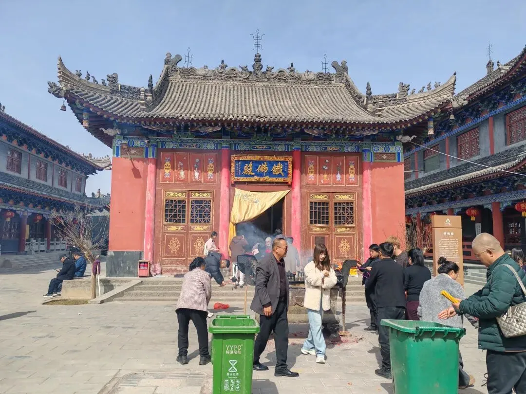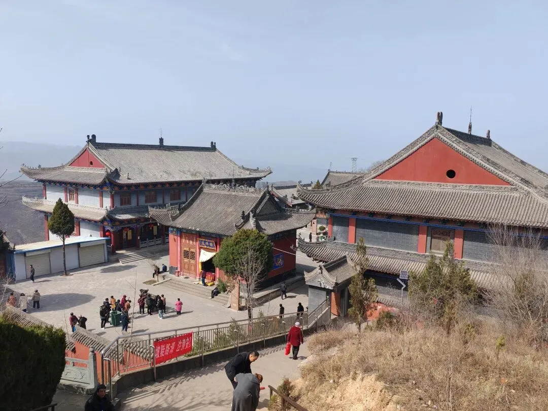 开了东南门的这处三进院落,铁佛殿后院由两边的斋堂和念佛堂及菩萨殿组成,三进院后面则是大雄宝殿,东西两侧又是庑殿,而且建筑面积足够大。由此可见净慧寺由南北三处山头构成三起建筑,分别由大佛像、净慧寺(上院)、梅子岭北下院组成,独立的三处建筑群,相互保持一些距离,但又近在咫尺,相互有机组合。通过广场、台阶、道路通达,院墙外山腰处还有别的好多殿堂,整个灵鹫山构成了净慧寺。站在山上登高望远,远处的山峦重叠,梯田麦浪令人心旷神怡。