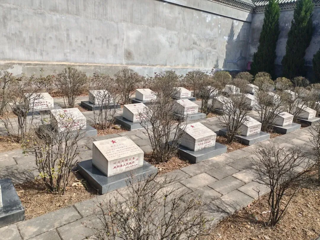 大约2公里处有凤翔烈士纪念园,于是绕道过去看看这些先烈长眠之地。纪念园与闻名西北的佛教圣地灵山相望,依山而建,呈梯形分布,整个纪念园由烈士墓区和烈士纪念广场两部分组成。到达的广场和石牌坊高端,看到有高高的台阶上去,无数的埋葬骨灰的墓地,但是上面的石碑字迹与烈士无缘...下来后才看见有字指引烈士纪念园在东。没有人民英雄纪念碑,较小的场所里只有60名不同时期的烈士遗骨。看到革命烈士身后长眠那么小一块地方,心酸地为他们致敬!