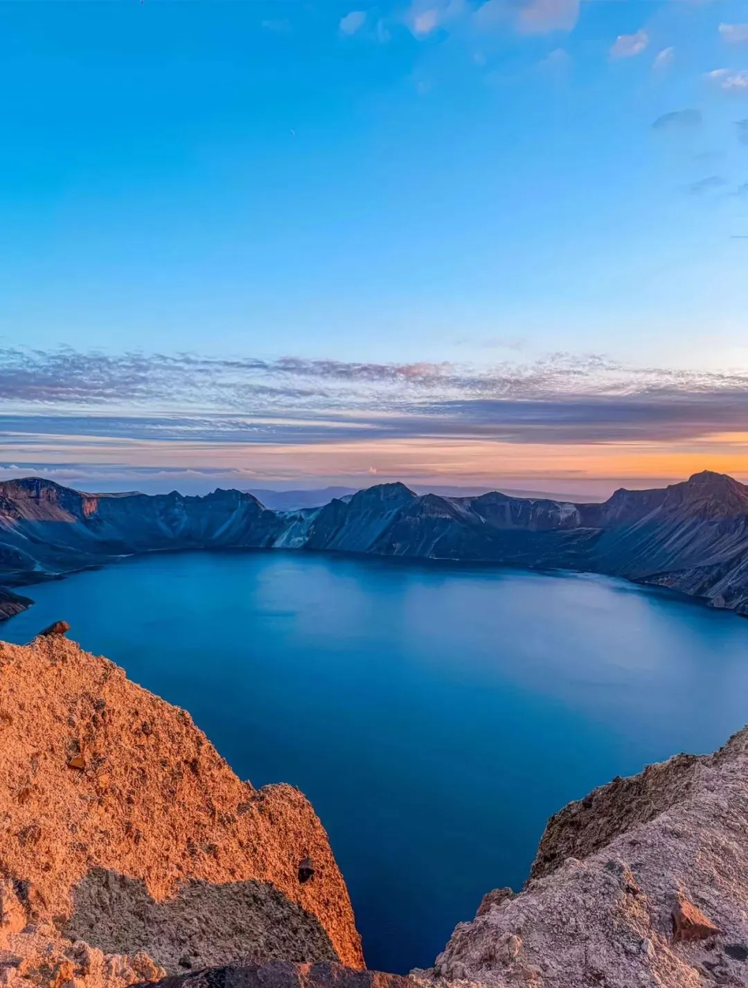 北坡的瀑布冻成了冰挂,.一动不动。天池口的风能把.人吹跑,十.次有九次看不到全貌,但.那次.看.到,你会记一辈子。.下山冻.透了.,赶紧泡进聚龙温泉里.,头发结冰,.身子滚烫,再剥.个.温泉鸡蛋吃。