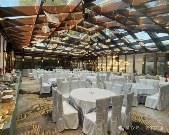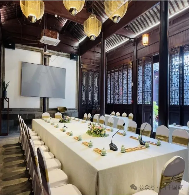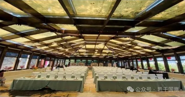 聚芸轩占地面积350平米,采用全景落地玻璃,放眼望去尽收近代江南特色建筑风貌,粉墙黛瓦、绿影婆娑。宴会厅可容纳150人用餐或者会议,厅内设有20平高清液晶屏及高保真音响设备确保高品质的视听盛宴,同时宴会厅设有全方位的空调设备、双层保温玻璃及电动遮阳帘,确保宾客无论严寒还是酷暑,均能享受一流的舒适体验。