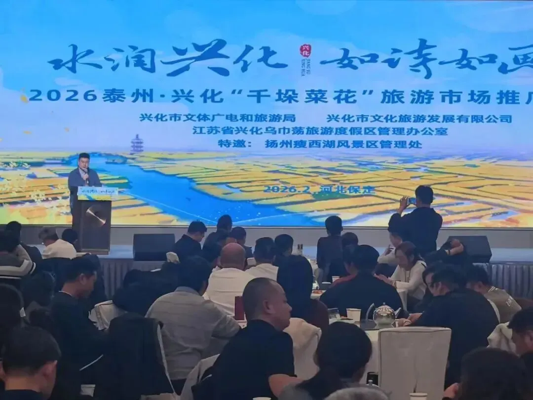兴化市千垛景区旅游发展有限公司营销部部长张明上台,正式发布了2026年兴化春季旅游营销政策。从团队奖励到惠民举措,一系列实实在在的政策红利,旨在吸引更多保定及华北地区的游客走进兴化、爱上兴化,同时也为两地文旅深度合作奠定了坚实的基础。