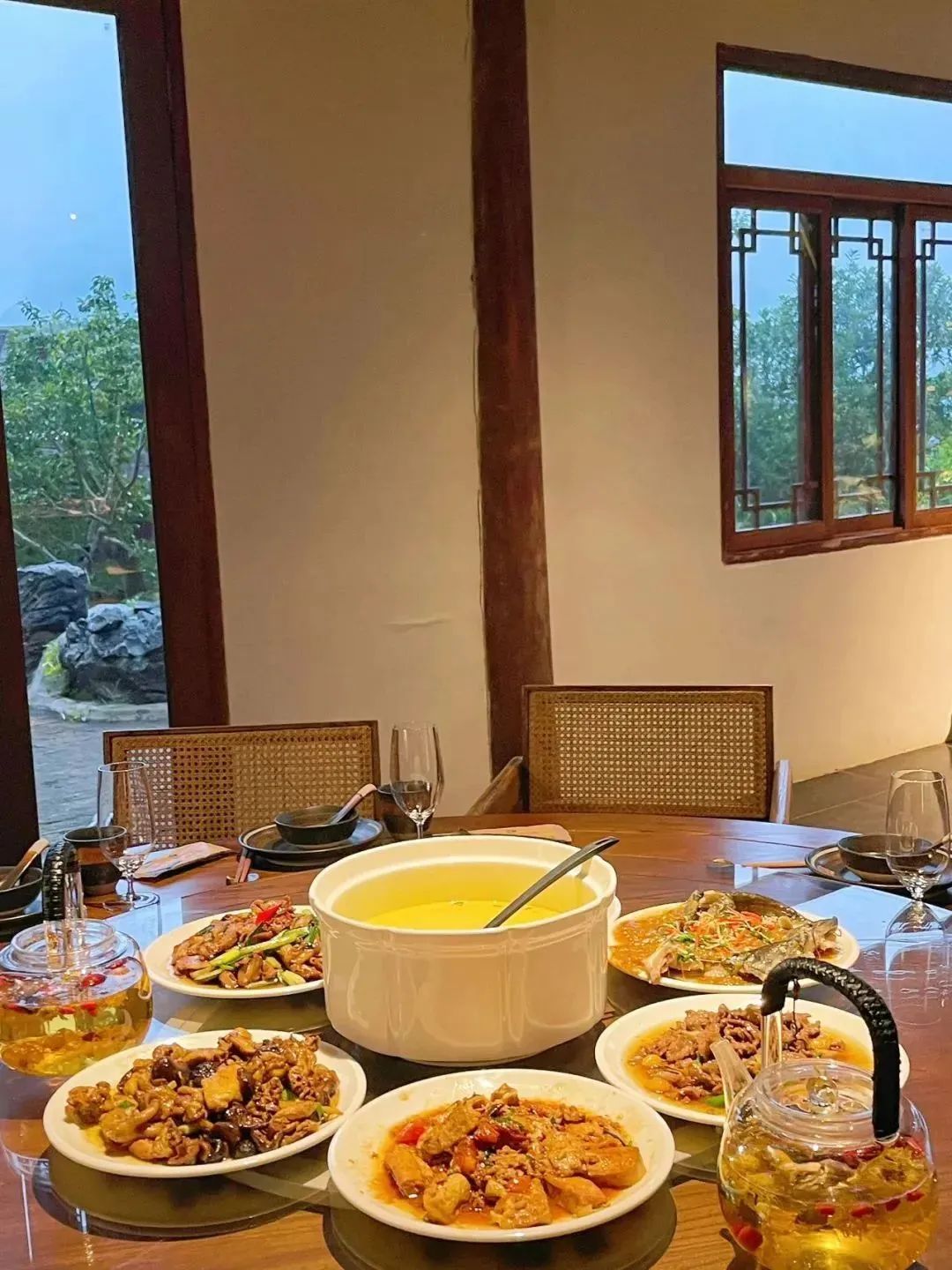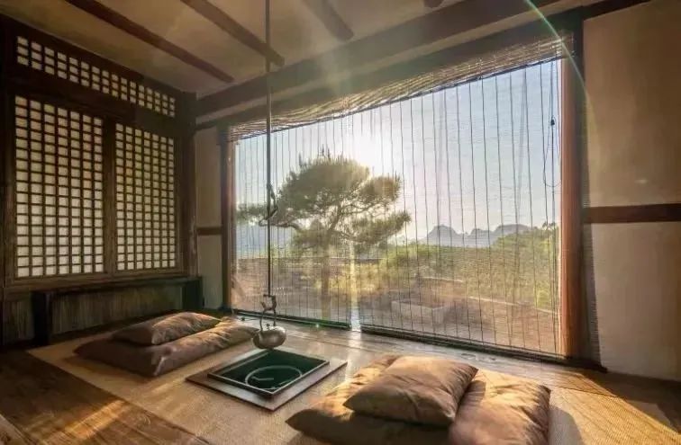 室内布置典雅静谧,窗外绿树成荫,诗意天成