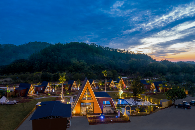 精心设计的山景野奢客房散布在山坡上