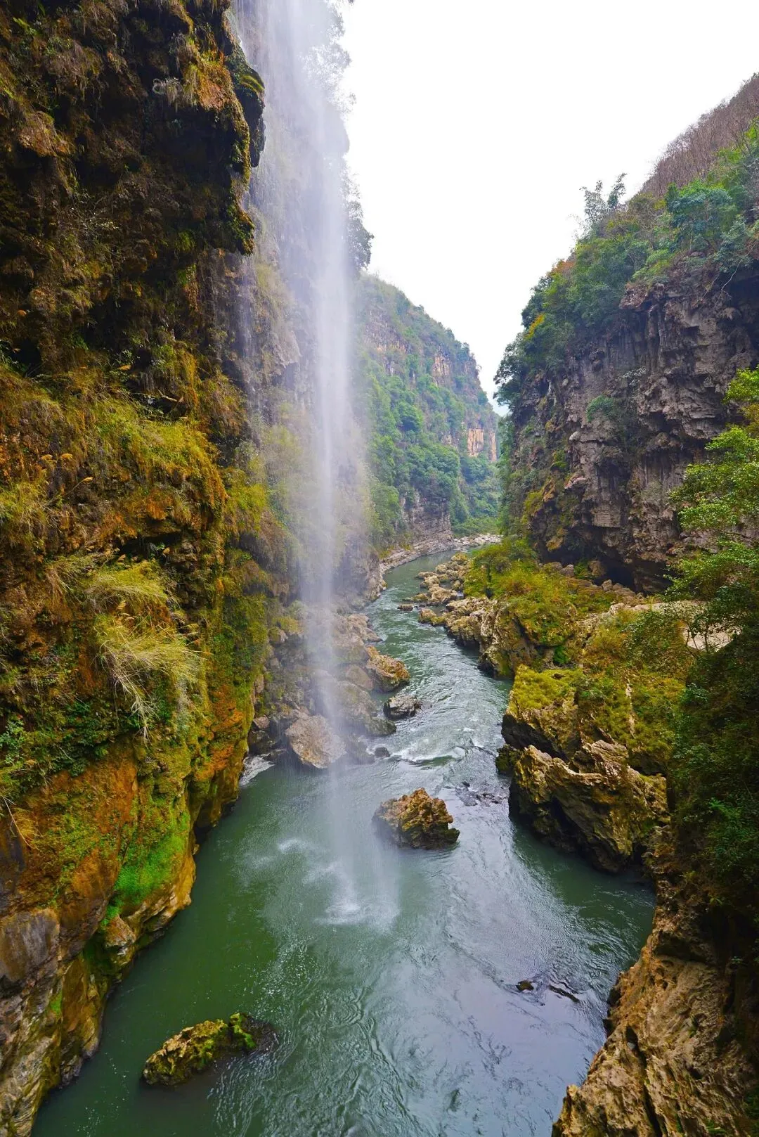 马岭河峡谷,被誉为“地球上最美丽的伤疤”,是国家AAAA级风景名胜区。它集古桥、古战场、古驿道等人文景观,充满了古野的情趣和神秘幽深的色彩,以规模宏大的瀑布和“岩页壁挂”,形成主要景观特色,堪称一绝。