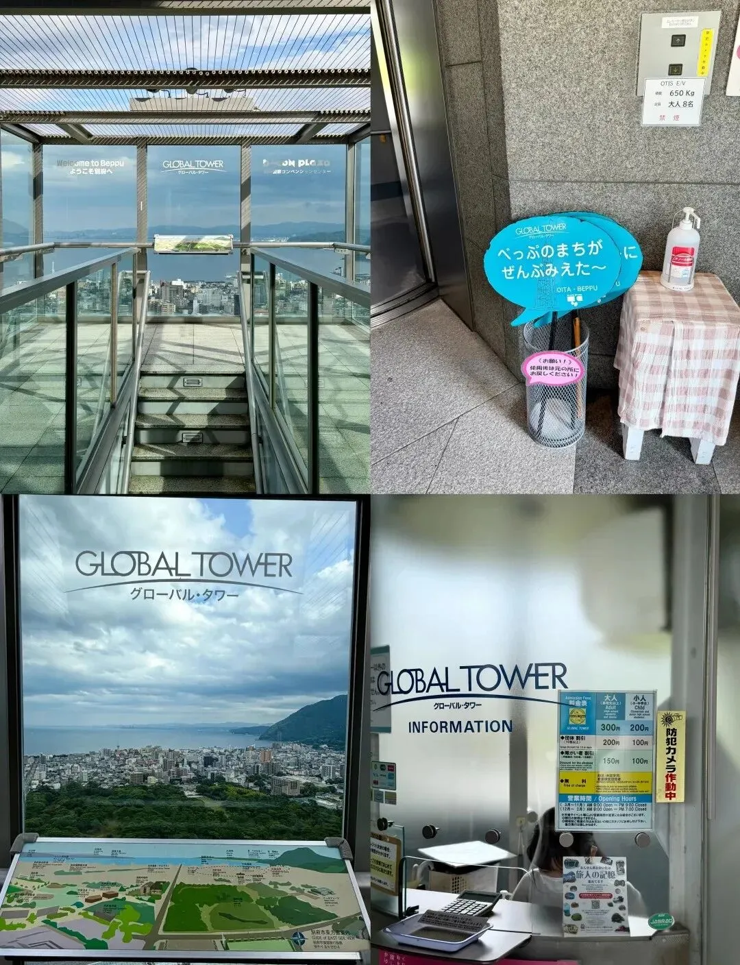 🎫300,俯瞰整个别府,电梯口的牌牌可以带上去拍照,视野无敌。