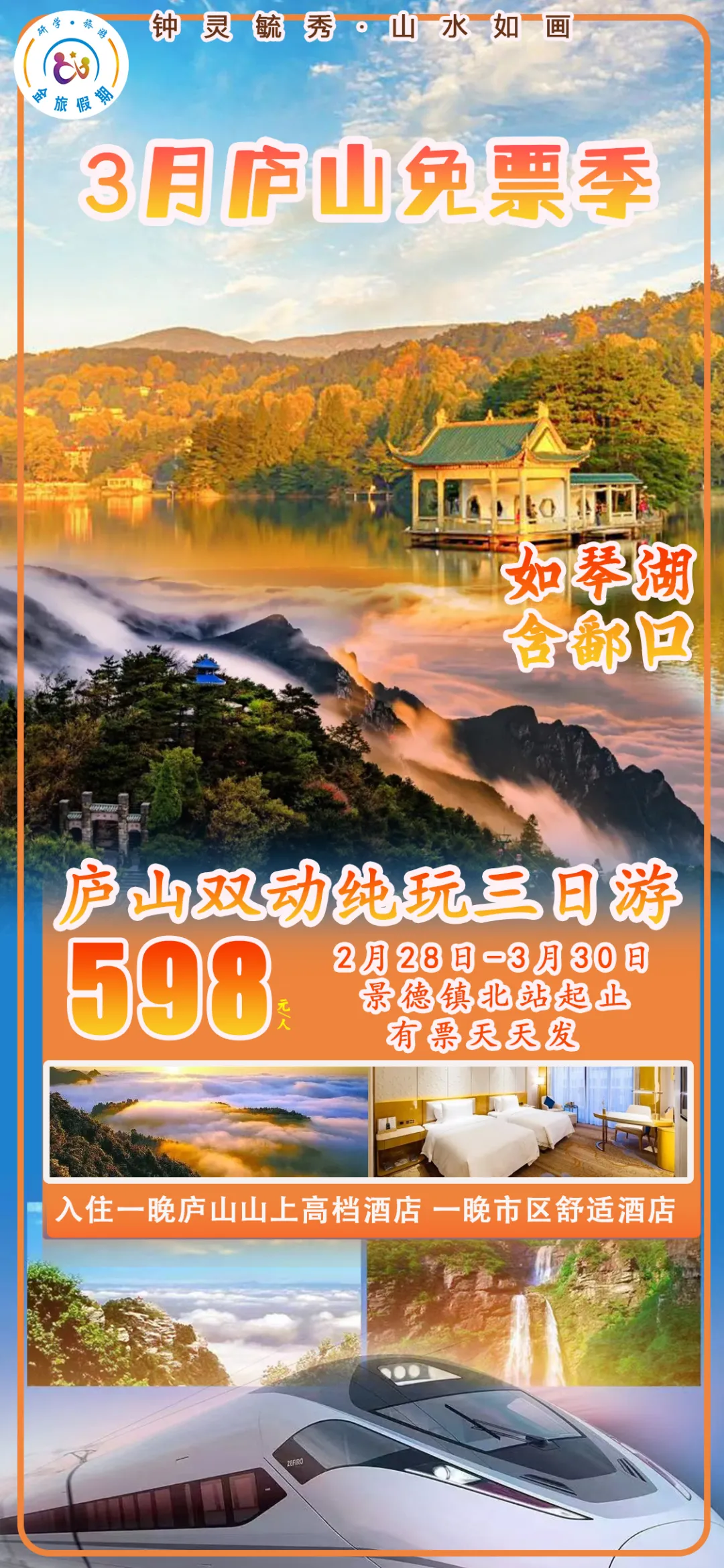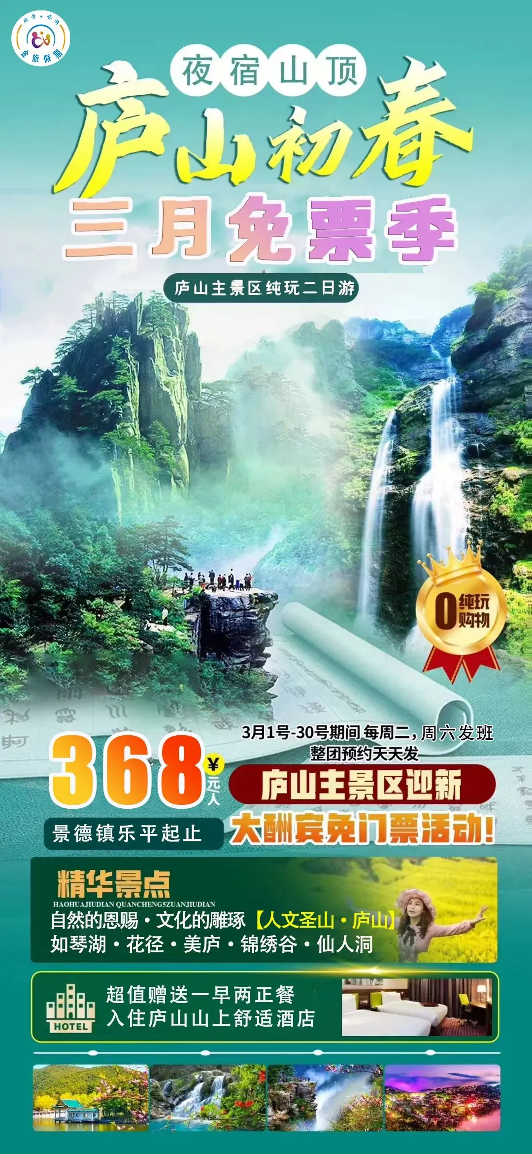 2月28日-3月30日 庐山双动纯玩三日游 天天发班