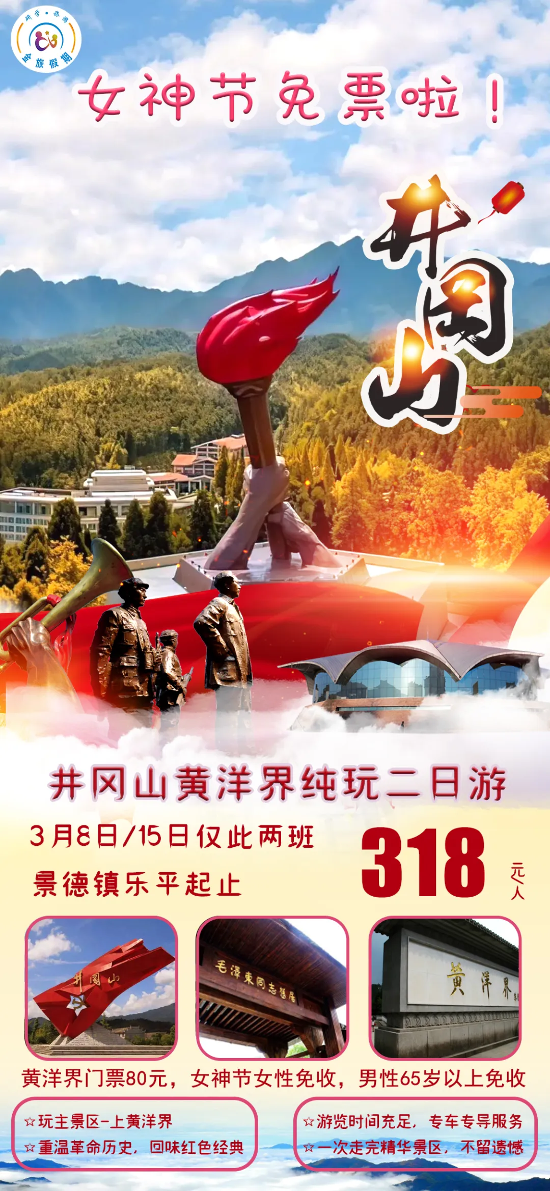 3月7/14日 井冈山免票纯玩二日游