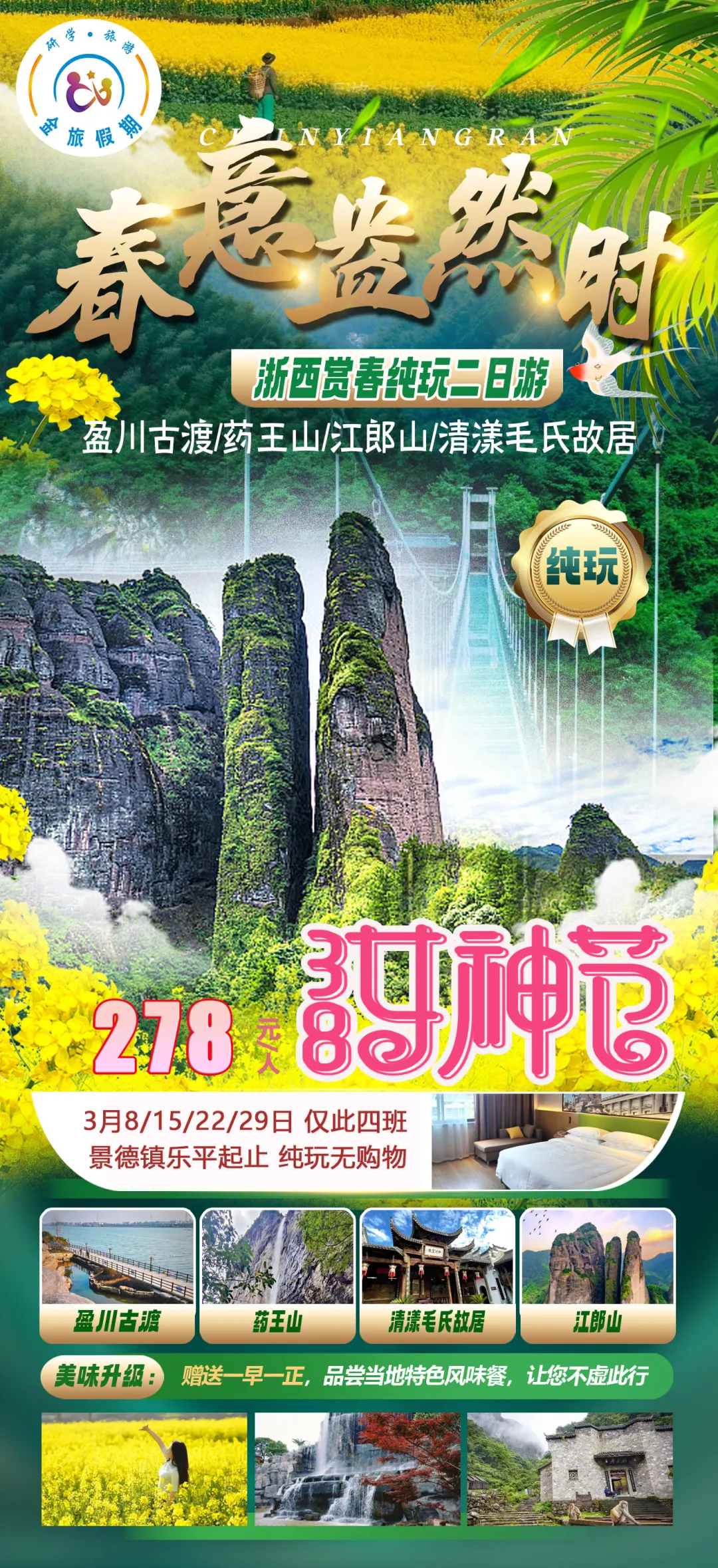 3月7/8日 龙虎山花语世界纯玩一日游