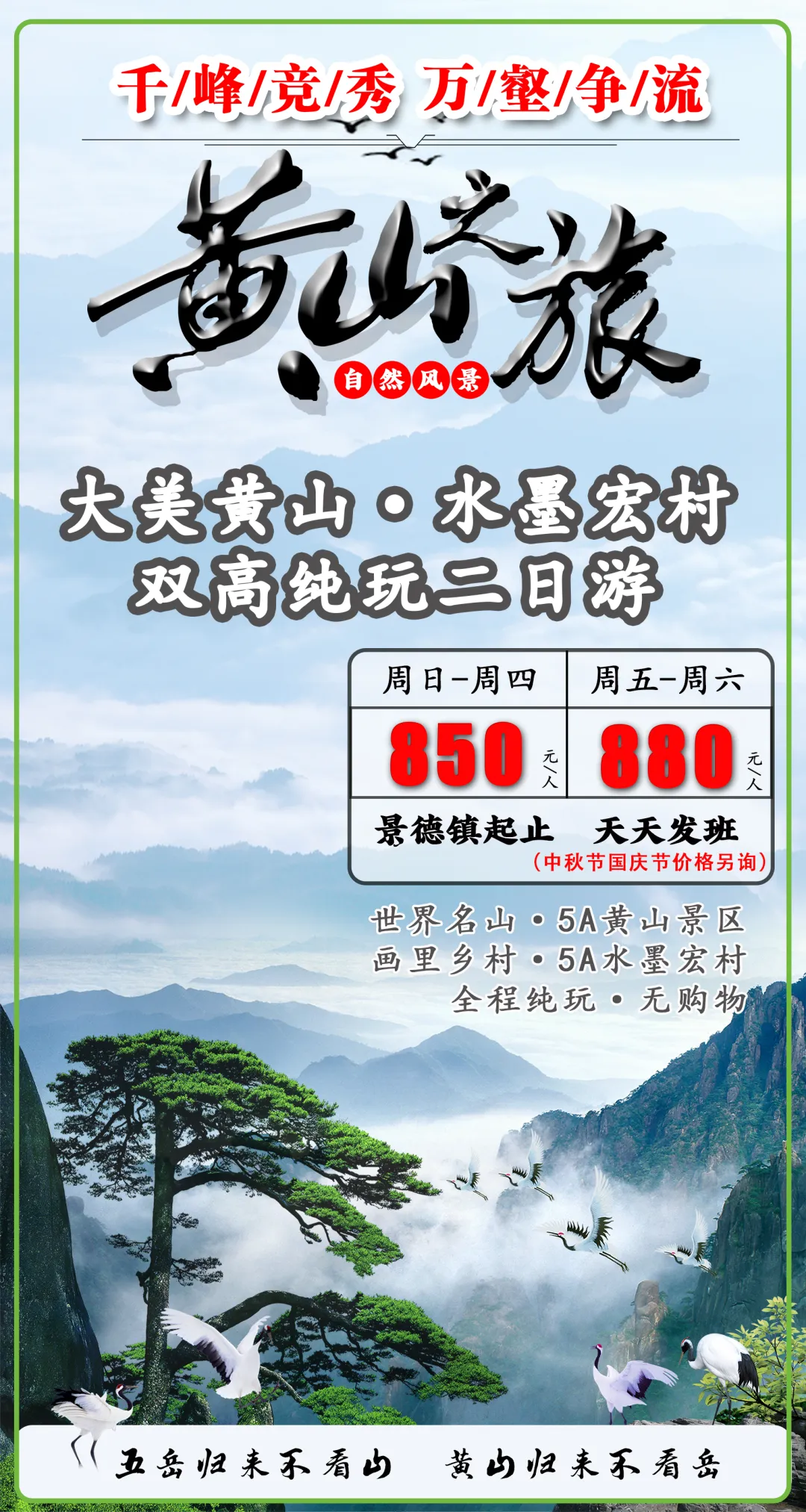 天天发班 大美黄山·宏村高铁班纯玩二日游