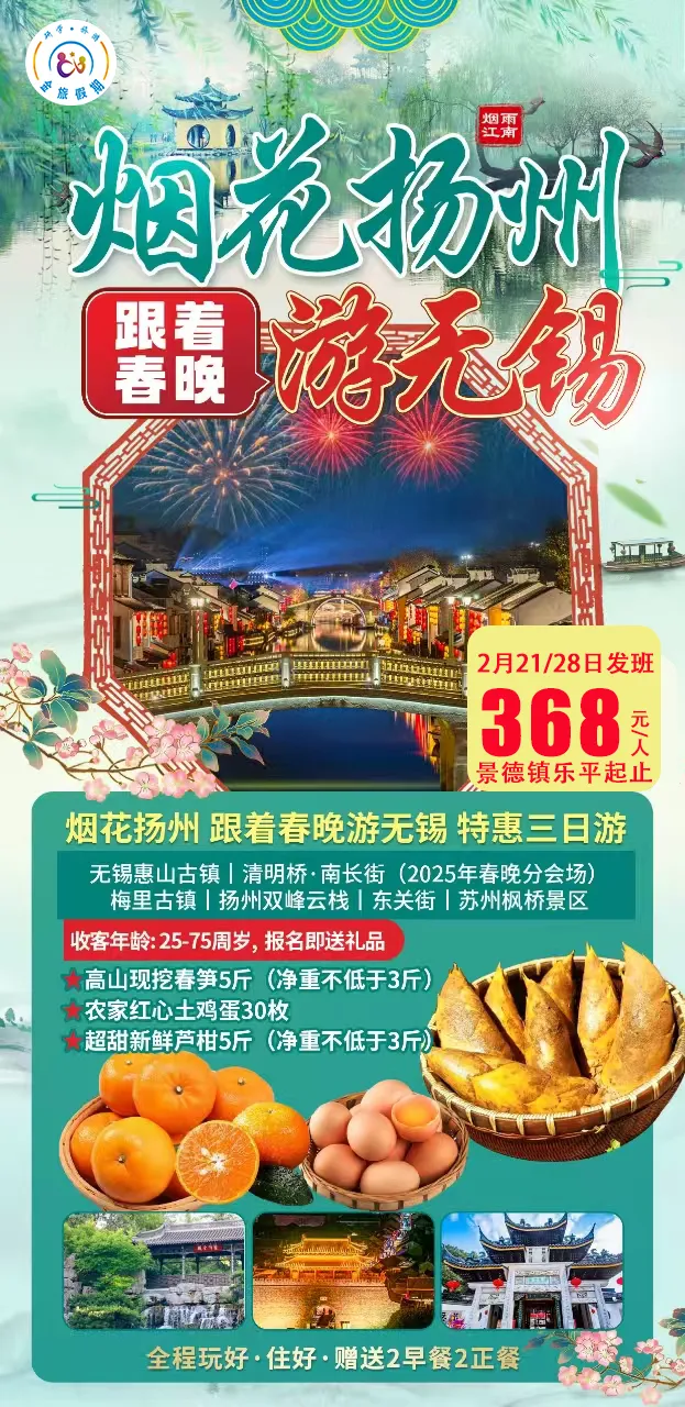 3月6/13日 烟花扬州跟着春晚游无锡三日游