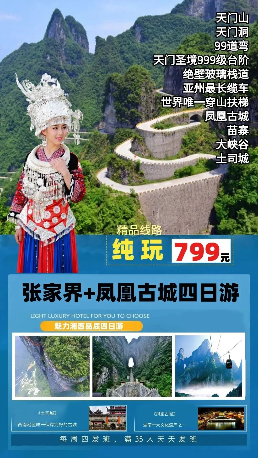 3月19/26日 王牌天门山·张家界+凤凰古城四日游