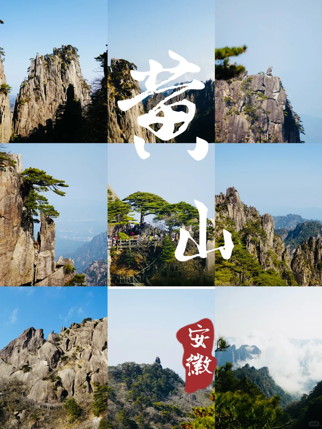 光明顶、迎客松、西海大峡谷、天都峰、莲花峰