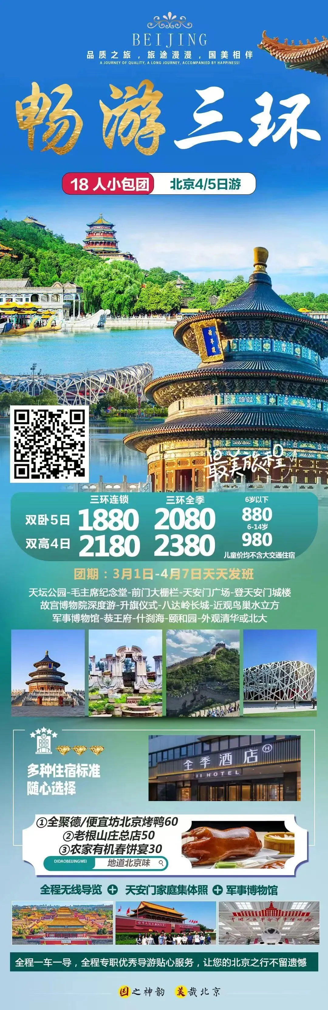 【景区线路】《畅游三环》北京纯玩双高铁4日或双卧铺5日游 18人小包高端团 团期:天天发团