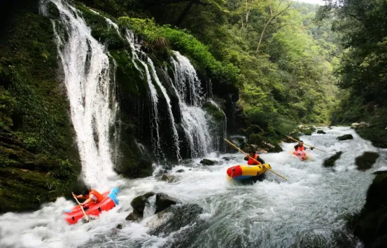 高过河漂流体验:错峰体验漂流,河段长 4.8-5 公里,落差 200 米,全程 3-4 小时,导游在关键点位等候,保障安全的同时,推荐漂流过程中的拍照打卡点;既能体验湍浪急流的刺激,也能在平缓河段感受峡谷两岸古木参天、蝉鸟唱和的自然美景,真正体验 “会唱歌的河流” 的魅力;