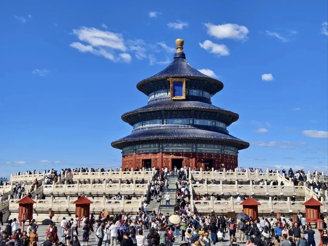 游览明清两朝历代皇帝祭天之地【天坛公园】(含联票,不少于 1.5 小时)是世界文化遗产,明清两代二十四位帝王举行登基大典及祭祀天神的专用祭坛,也是世界上现存规模最大,最完美的古代祭天建筑群。