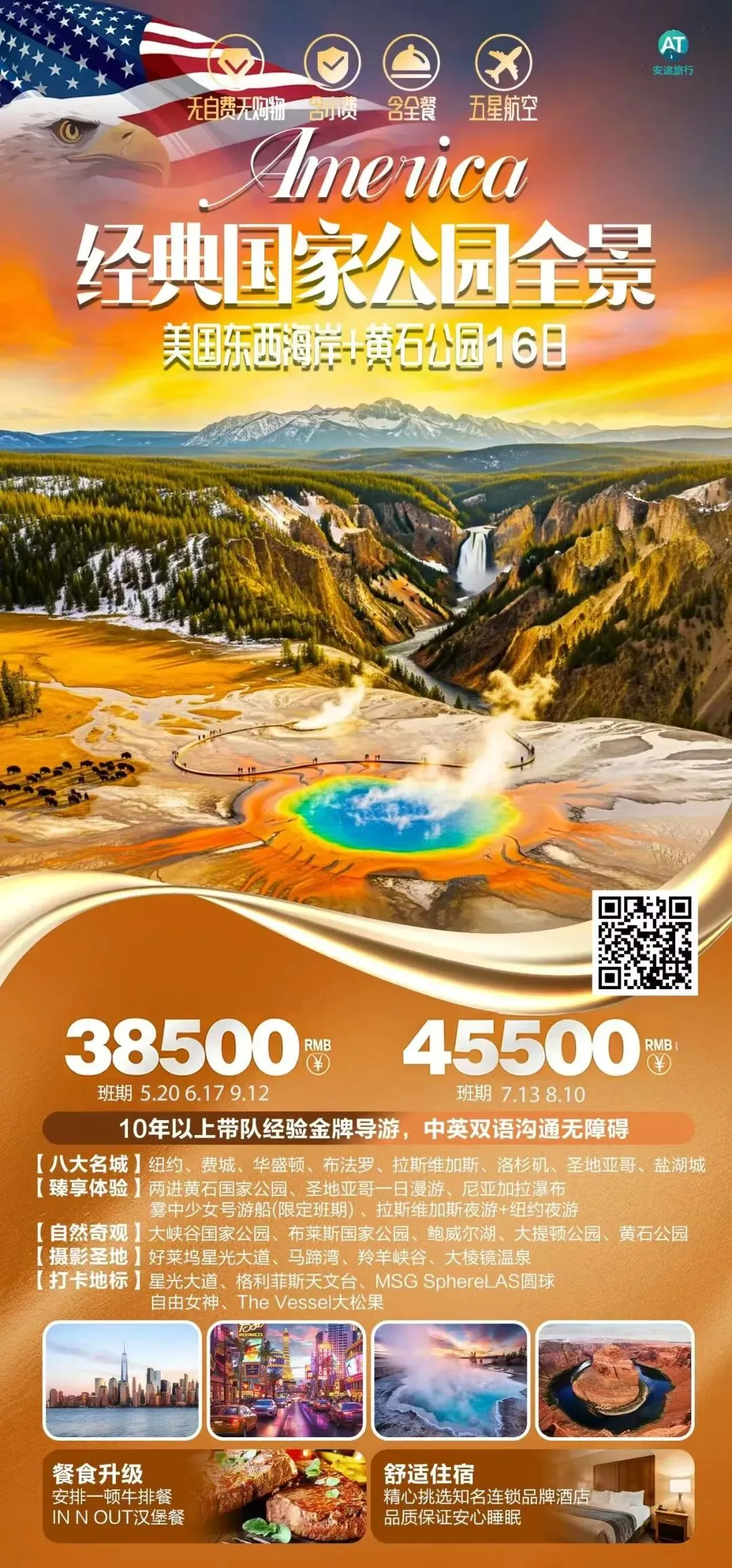 🗽【经典国家公园全景】美国东西海岸+黄石公园16日