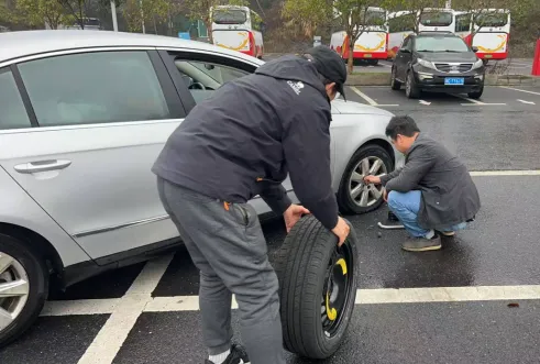 ●2月16日,除夕当天,在游客服务中心值守的物业公司工作人员姜小宁发现一辆银色轿车因故障无法行驶,问明原因后,主动帮助车主更换备胎。