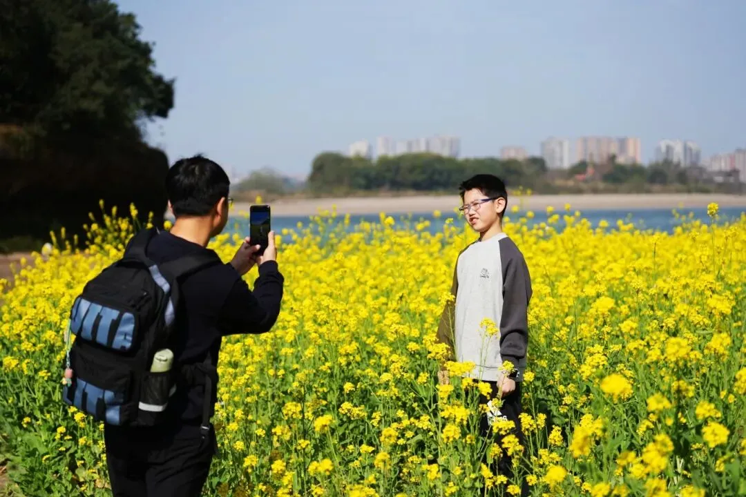 “今天有空跟朋友们来这里玩,我觉得油菜花开了,河边的水也很清。今天在这里玩得非常开心,这里适合打卡,非常有意义。”市民熊汝霖说。