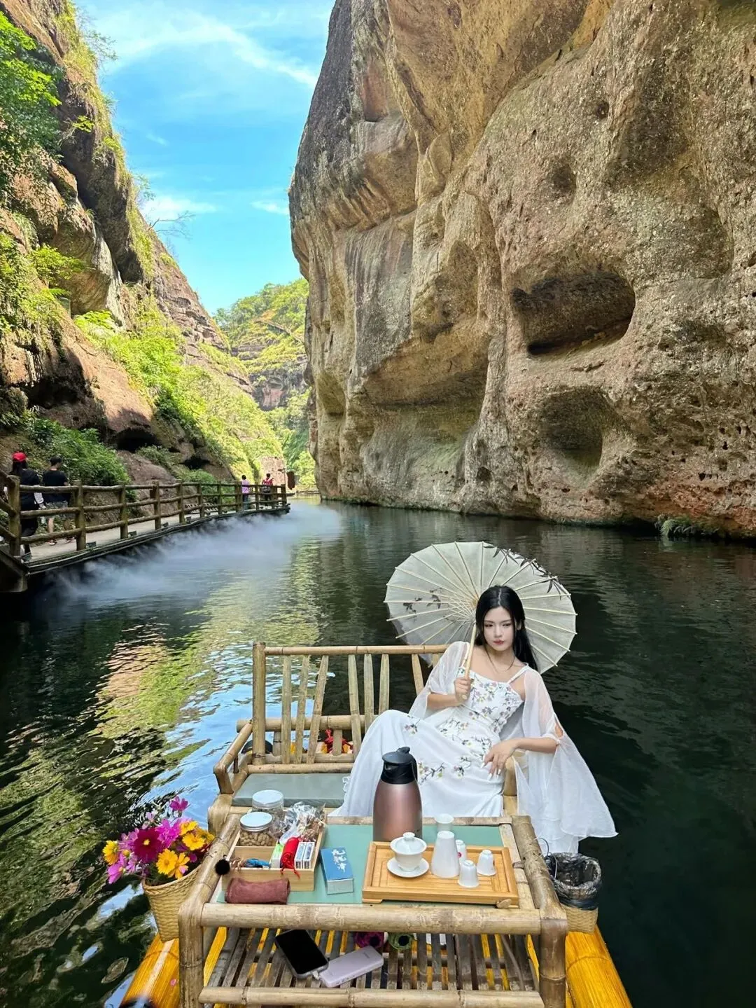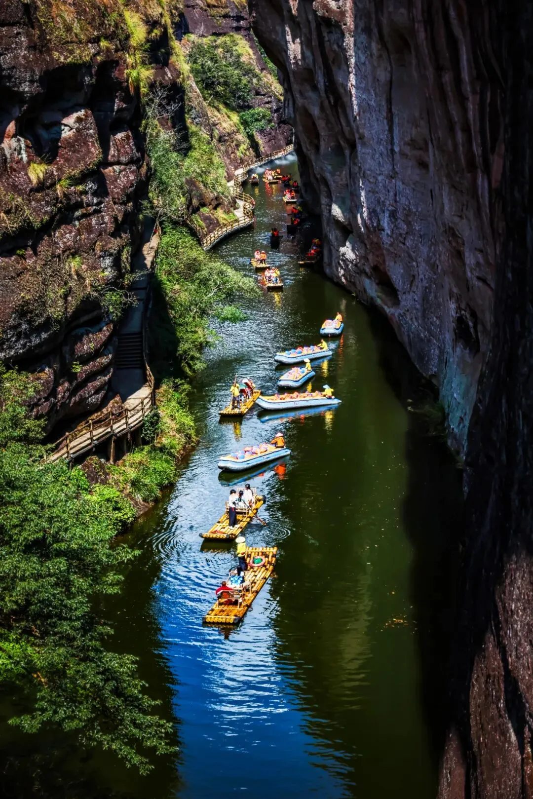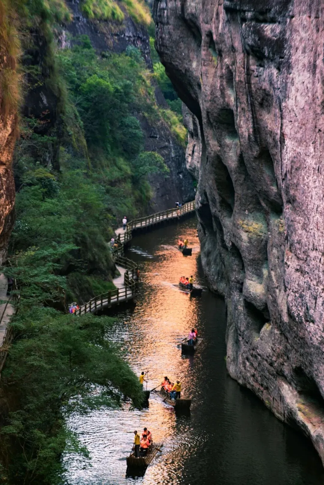 泰宁九龙潭被誉为“水上丹霞的精品”、“丹霞山水微缩明珠”。景区体验感丰富,自然景观绝美,呈现“日+夜、水+陆”全链条全时段游览。日游为水陆联游,动静结合,水上竹筏带您穿越三条身形不一的“千米水上一线天”,驻足“水天玻璃栈道”“洞穴休闲吧”、感受水天一色的惬意和美好;夜游乘船赏光影,作为全国首家“行浸式”水上峡谷夜游项目,游客可乘坐发光气垫船,仿佛与世隔绝,真正实现用立体的视觉,享受“游于仙境,行于画卷”的超然心境。