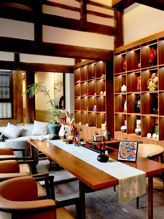 福旅家·燕山香舍是藏在景区里的艺术馆,四合院式的空间布局,分布四个院落,结合了福建本土非遗文化艺术,分别设有非遗大漆主题空间 、岩彩画·岩土绘艺术品展陈空间、名人字画展陈空间、非遗彩玻主题空间,住客可在艺术鉴赏中体验手作的魅力。艺术与空间的联袂,让时间有了使命,使空间有了灵魂。
