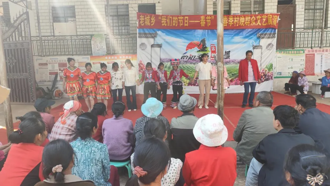 2月16日至3月3日,老城乡新时代文明实践所组织辖区4支优秀乡村文艺队,以“传承乡土文化・共贺马年新春”为主题,在10个村委会的多个村组开展2026年春季村晚群众文艺巡回演出。参演队伍汇聚了各村文艺骨干、非遗传承人和返乡青年,他们自编自导自演的广场舞、传统花灯、方言小品、正能量歌曲等节目轮番登场。内容紧扣民族团结、乡村振兴、文物保护、移风易俗等主题,将家乡的发展变化和群众的幸福生活搬上舞台,让村民在家门口尽享文化大餐,生动诠释了“始祖圣地・古韵老城”的文化魅力,推动文化惠民工程走深走实。截至目前,巡演已开展20余场次。演出现场,各族群众欢聚一堂,在欣赏节目的同时聆听党的政策理论宣讲,欢乐喜庆的氛围中,大家的心更近了,情更浓了,中华民族共同体意识在潜移默化中深深扎根。