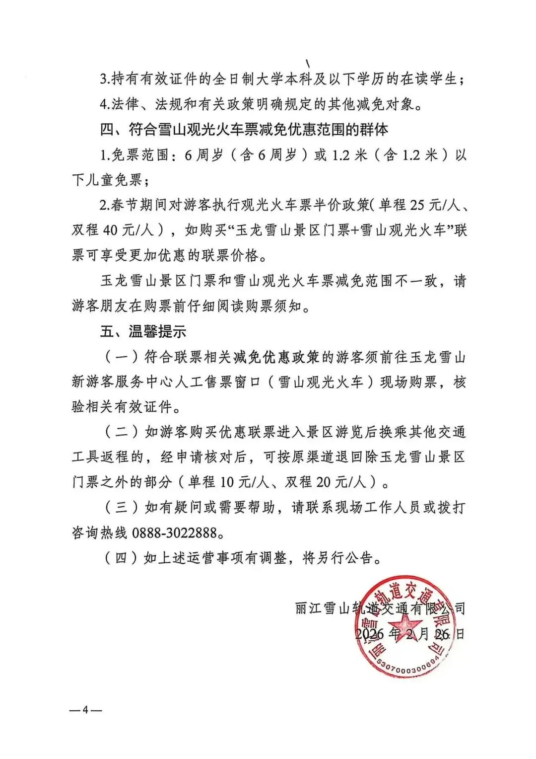 关于延长“玉龙雪山景区门票+雪山观光火车”优惠联票期限的公告传播丽江新声音 做有价值的内容