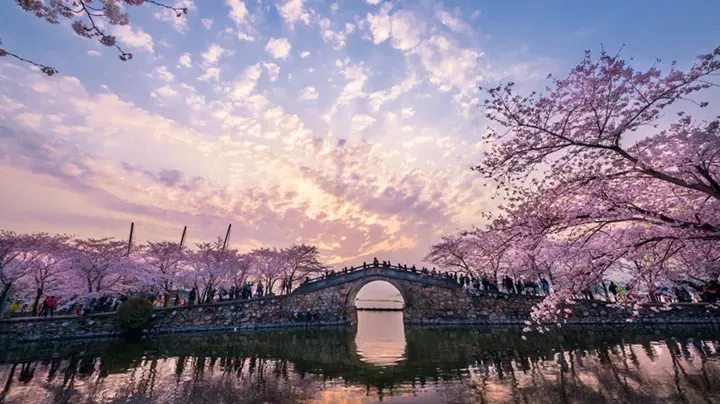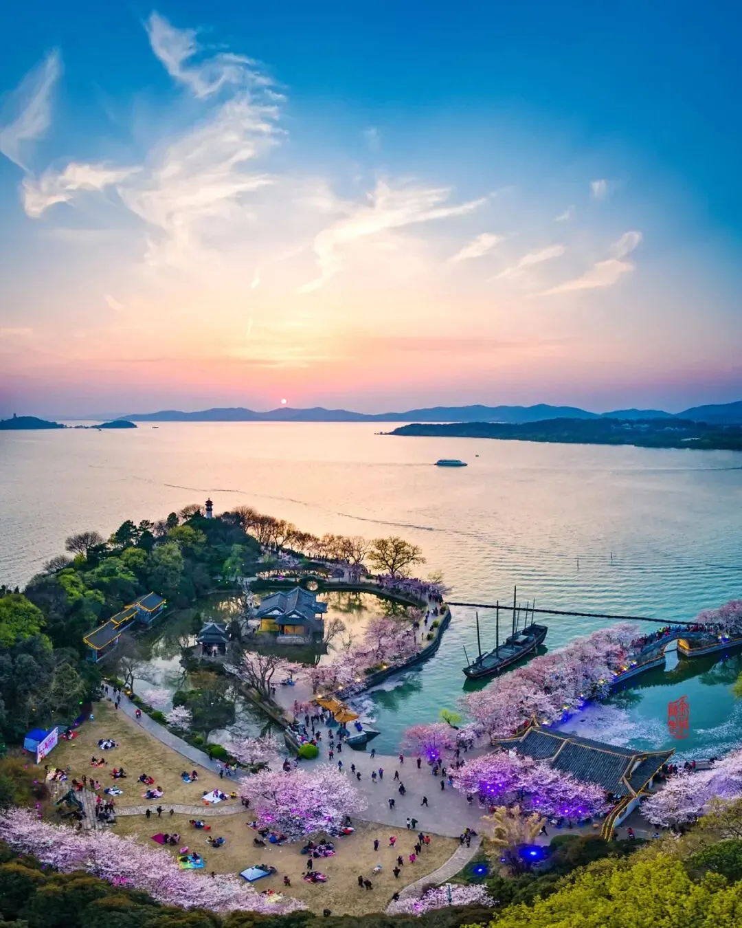 樱花鼋头 :樱花如云似霞 ,似梦境中的绮丽 ,看花瓣轻拂过水面 ,留下一抹不染尘埃的绝美~