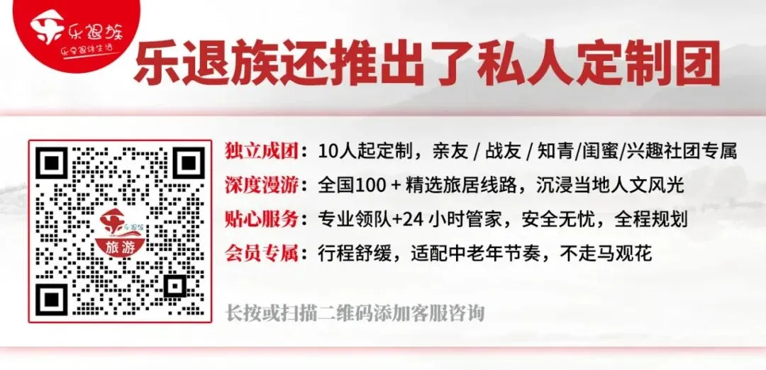 "边玩边养老"是乐退族旗下的专属旅居品牌一一既没有传统跟团游的赶行程、累的够呛,也没有纯自由行的没人管、多操心,主打"半自由旅居"模式,基础服务全含,周边游玩按需消费不浪费,让退休老友把旅行过成舒服的养老式度假生活。