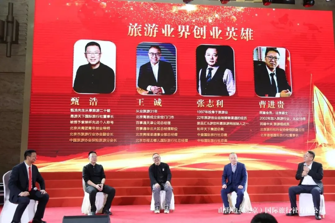 答谢会中,特设旅游创业英雄论坛,和平天下集团、易游天下、携程旅游、首都国际旅行社四家企业领导受邀参与创业论坛环节。四位领导分享了各自的创业经历,和多年的从业感悟;同时共有9家旅行社被授予“旅游创业英雄称号”。