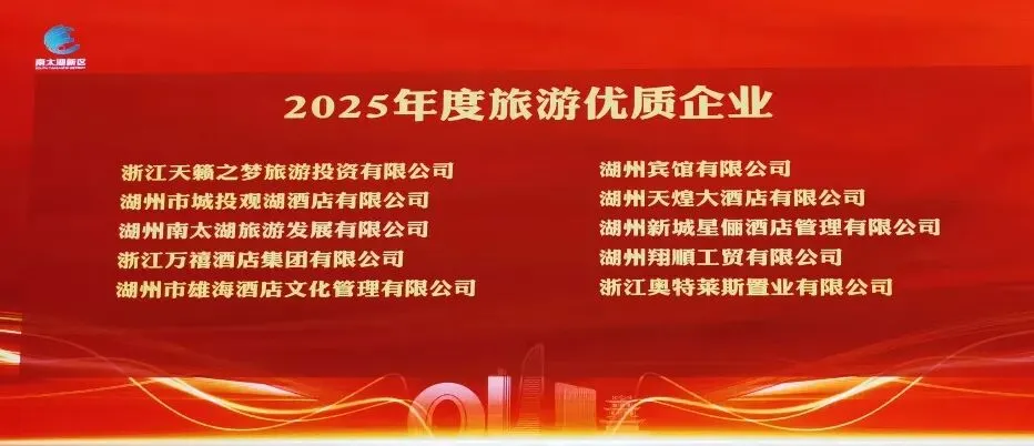 喜报!湖州宾馆再获南太湖新区“旅游优秀企业”荣誉称号