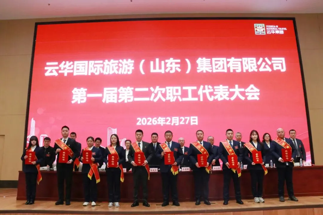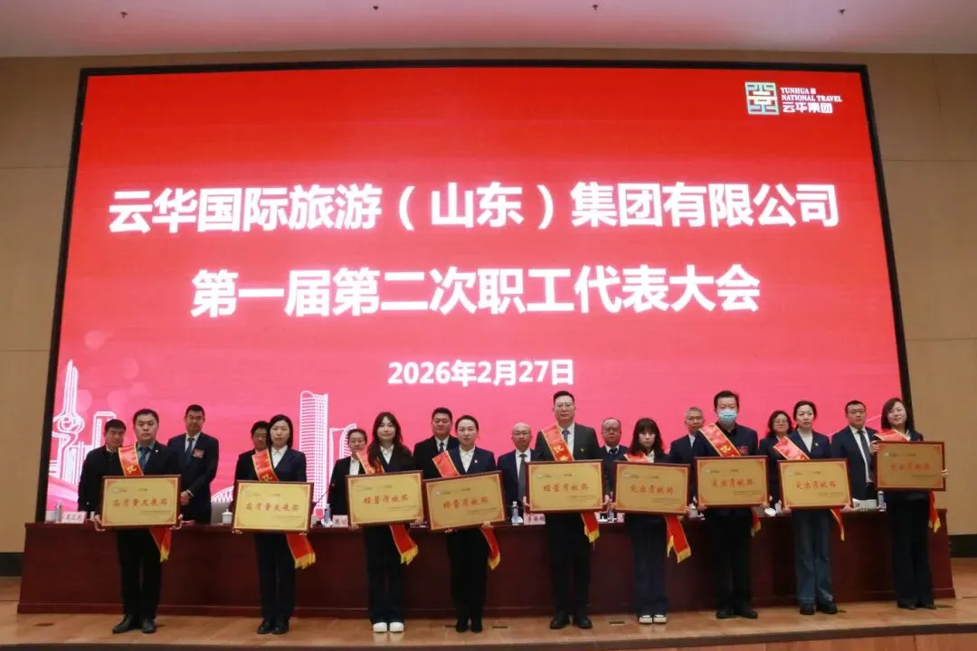 2月27日,云华国际旅游(山东)集团有限公司第一届第二次职工代表大会暨2025年度工作总结表彰大会在山东国际会展中心隆重召开。会议以习近平新时代中国特色社会主义思想为指导,全面总结2025年集团发展成果,隆重表彰先进典型,科学谋划2026年发展蓝图,签订目标责任书与廉政建设责任书,为集团文旅产业高质量发展凝心聚力、锚定方向。