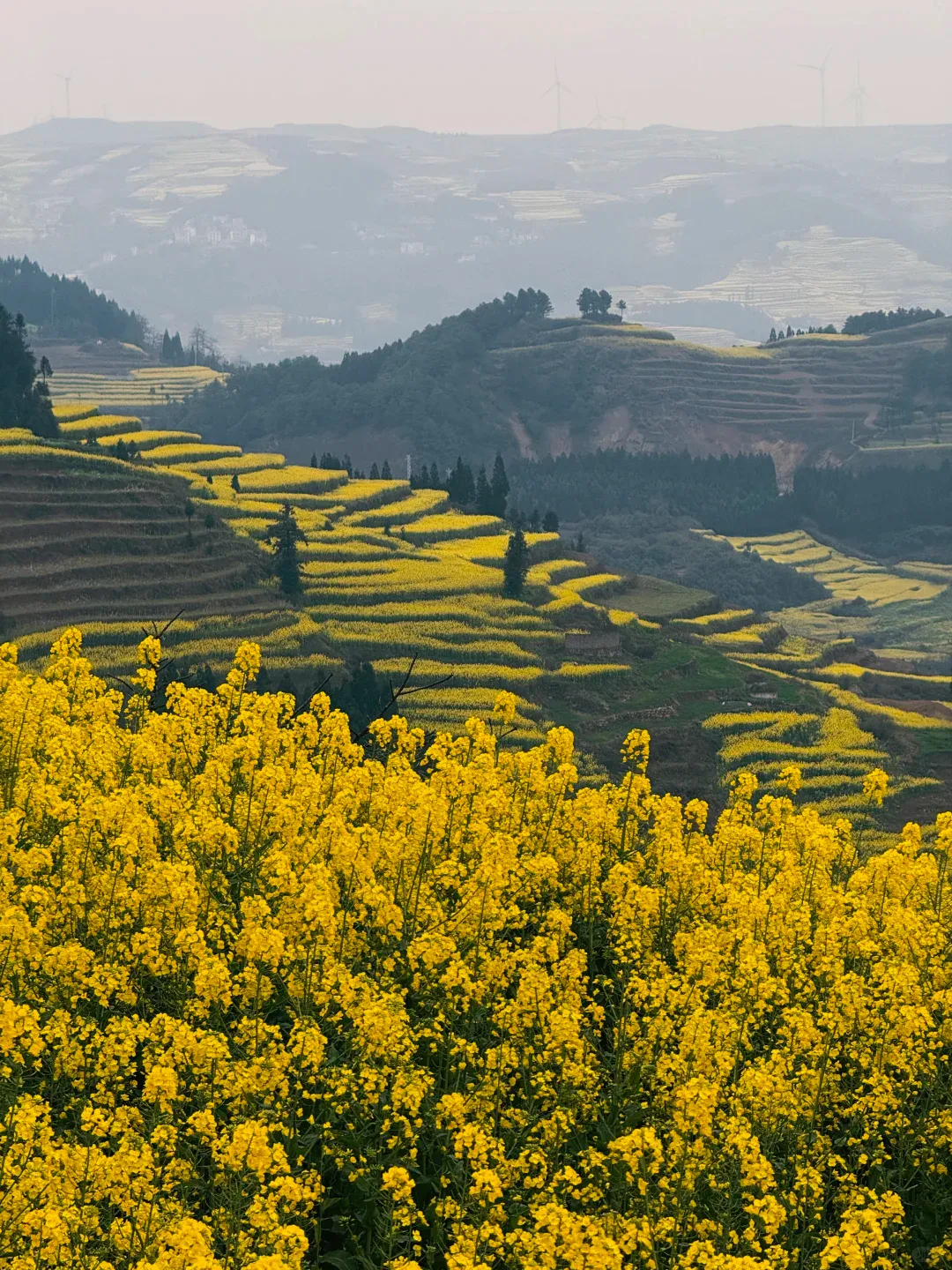 二月到三月,罗平的80万亩油菜花竞相绽放,把大地染成一片金色海洋。