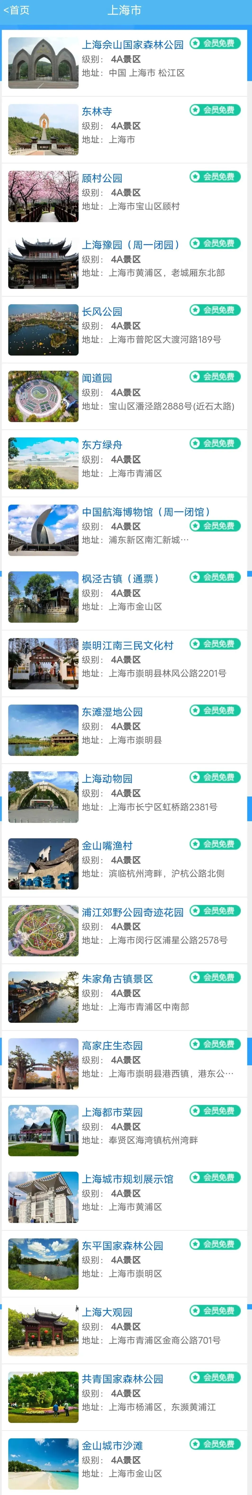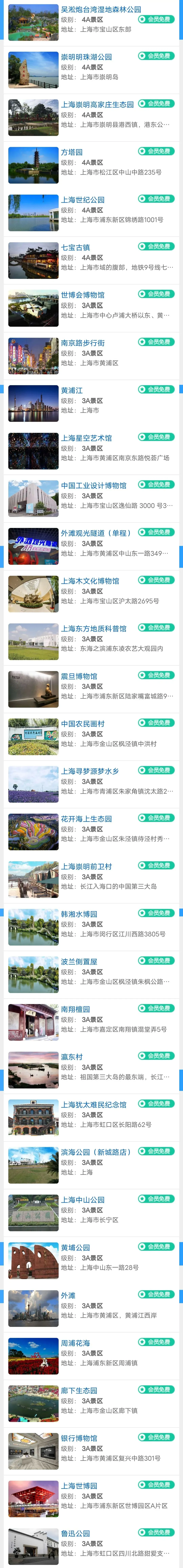 上海旅游年卡景区目录