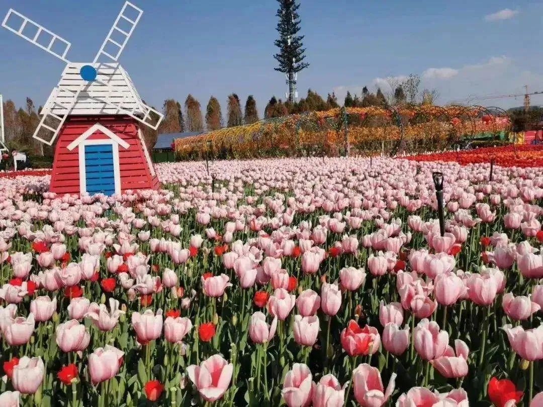 捞渔河公园的郁金香花开成海。近百万株郁金香花开成海惊艳了春城昆明,徜徉漫步在花海中,映 入眼帘的花朵饱满鲜艳。白色清新脱俗,粉色粉嫩娇艳,黄色明媚可爱,让人目不暇接、沉醉其中 。微风拂过成片的郁金香迎风摇曳,放眼望去,花海、风车、游人相映成趣,构成一幅幅充满诗意 的画卷。昆明的花都开好了,就等你来拍照打卡啦!欢迎通过进入“滇池度假”APP中“随拍度假” 栏目,带“春暖花开”标签进行投稿(照片或短视频),参与征集活动。投稿成功后会有专人审核 ,一旦录用,您的作品将有机会登上滇池度假发布微信公众号哦!