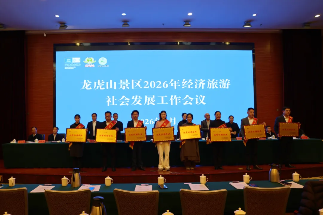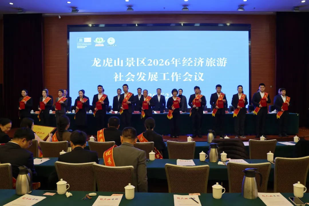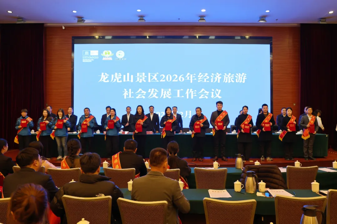 会上,通报表扬了龙虎山景区2025年度先进个人和优秀旅游企业、市文旅投集团2025年度先进个人,与会领导为受表扬代表颁奖;上清镇、龙虎山镇、综治办、经贸局、自然资源分局、农业局、应急局,道语营销公司、美景公司、酒管公司、美丽目的地公司等单位围绕做好2026年工作作了发言。